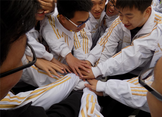 参赛学生赛前互相鼓舞加油