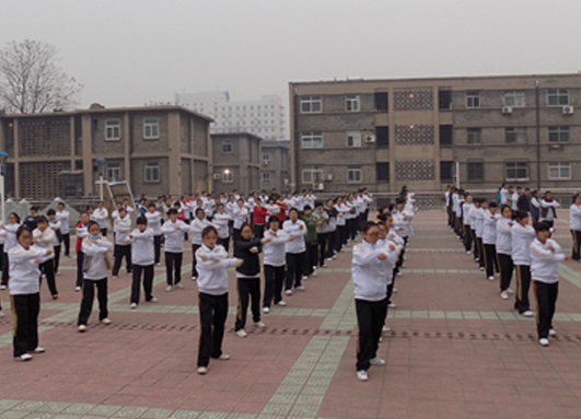 参赛学生认真练习广播操