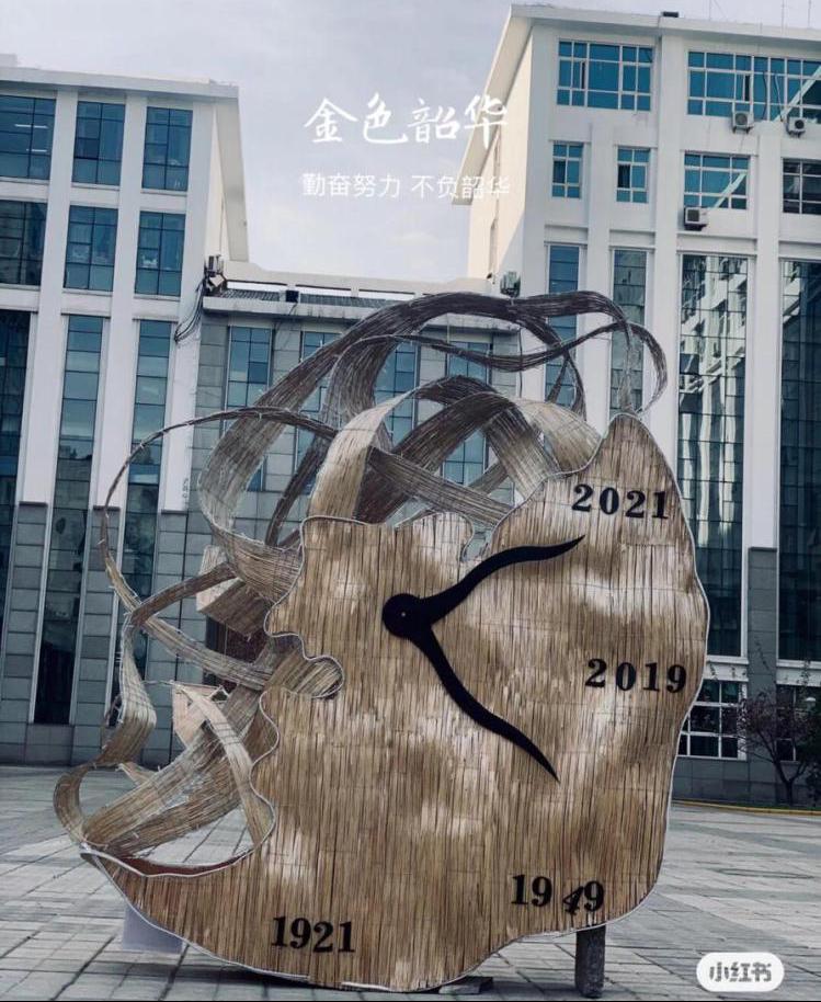 设计理念:流动的表盘,蔓生的时钟,作品以时间为设计理念,钟表与飘带为设计元素,启示青年大学生珍爱时光,发奋努力,不负韶华。