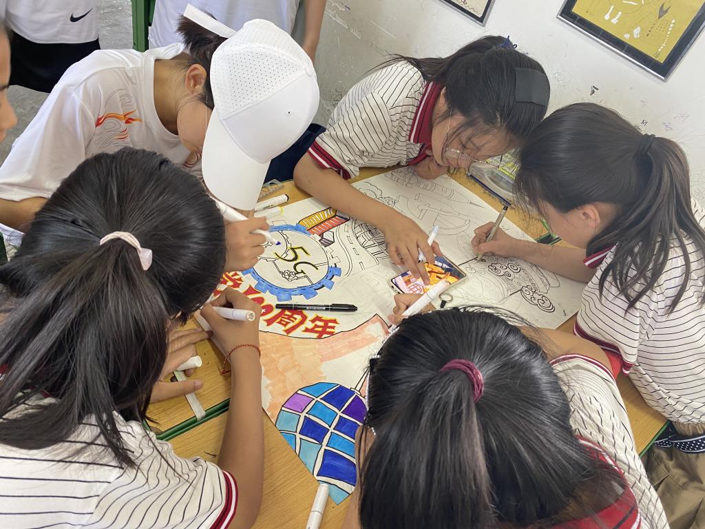 的志愿者们首先向同学们讲述了党的百年光辉历史,并指导小学生用手中的画笔精心绘制了百余幅象征中国共产党一百年峥嵘岁月,一百年浴血拼搏的画作。