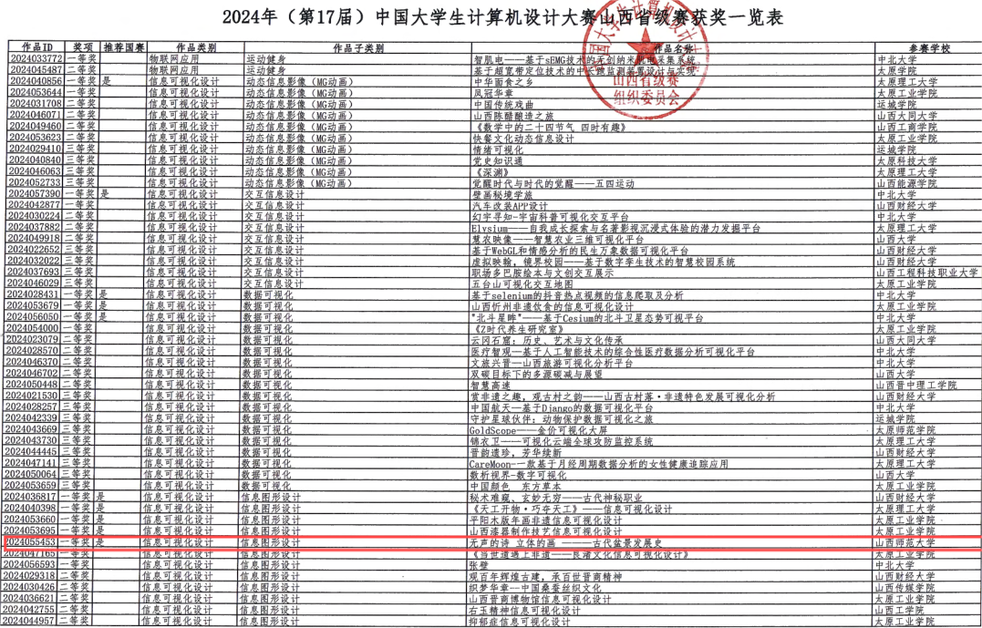 近日,2024年(第17届)中国大学生计算机设计大赛山西赛区比赛结果公布, 成人论坛