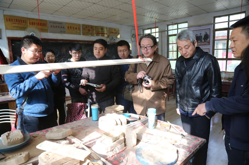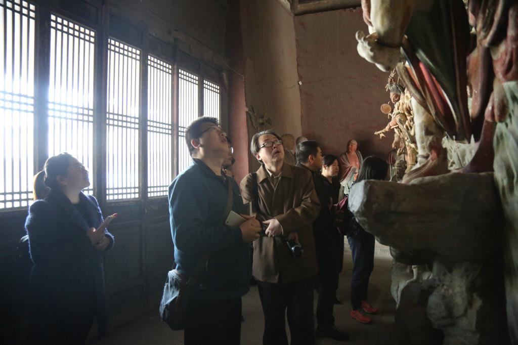 在国家级非遗项目代表性传承人蔺涛的带领下,调研团首先参观了国家级非遗、省级非遗大师工作室绛州澄泥砚生产基地、中国绛州澄泥砚文化园,了解该非遗项目的历史渊源、工艺流程、传承现状、创新情况和未来发展规划。在国保文物福圣寺,众人就寺院结构布局、佛像雕塑、彩塑进行了细致考察。又参观了光村明清院落两座,调研团从古民居木雕构件、石雕基础等方面入手,仔细地探询其建筑风格、考察建筑年代、判断其所蕴含的历史、文化和艺术价值。