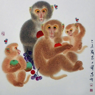 从2000年开始,属猴的吕思明与猴子结下了不解之缘。在学习并继承古代画猴名家的基础上,他结合现代人的审美情趣,开创了彩墨“泼毛”技法,逐步形成以猴儿为载体的拟人手法,缘物寄情,寓意美好的典型中国画画风,为广大人民群众所喜爱,被百姓誉为书画界的“美猴王”。16年来他画出1000多幅猴画,并曾在中央电视台展示过“美猴图”作品。