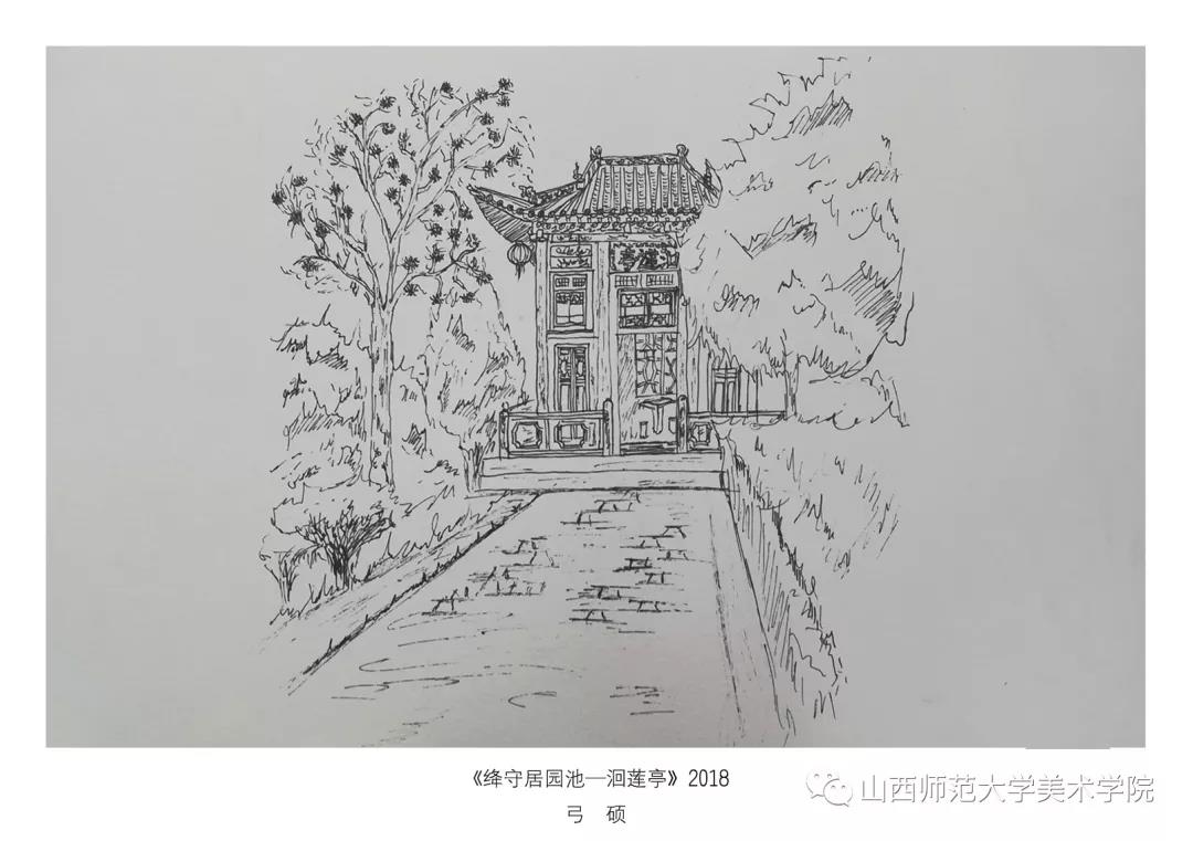 考察作业要求为古建筑及建筑装饰钢笔速写或者钢笔(铅笔)淡彩。实习过程中,大部分同学都能认真的去完成写生,从最后的作业呈现和我每日的观察来看,可能是环艺专业绘画实践较少的原因,同学们在造型、色彩、构图能力还存在或多或少的问题,有的同学是造型能力有限,有的同学是对钢笔淡彩的材料和技法还无法掌控,有的同学是专注与用心程度不够。
