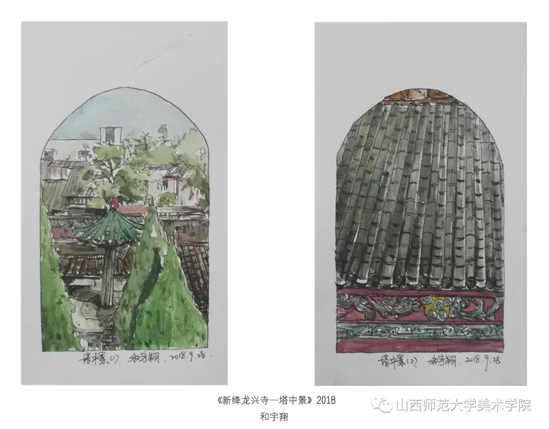 本次实习考察目的为晋南地区古建筑艺术考察。晋南现存的木结构古建筑以封建社会中晚期的宗教建筑保存数量最多,价值也最高,时间从唐代至清代一脉相承,环环相扣,完整地代表了中国古代建筑在不同历史时期的风采。由于时间有限,不能考察太多建筑遗存,此次考察选择了襄汾县汾城镇古建筑群和新绛县古建遗存(绛州三楼、龙兴寺、隋代花园,绛州明清民居)为目的地。由于目的地路途不远,考察日程定为当天往返,同学们全天都在户外进行写生绘画,行程紧凑也较为辛苦。