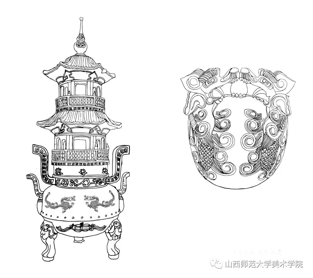 心得:这次外出写生让我对传统纹样和雕塑有了新的认识,一次次被琉璃塔每层每面的精美纹样所震撼,其内塑像难度之高,技艺之精湛,也让我更加深刻的明白了纹样采集的意义。