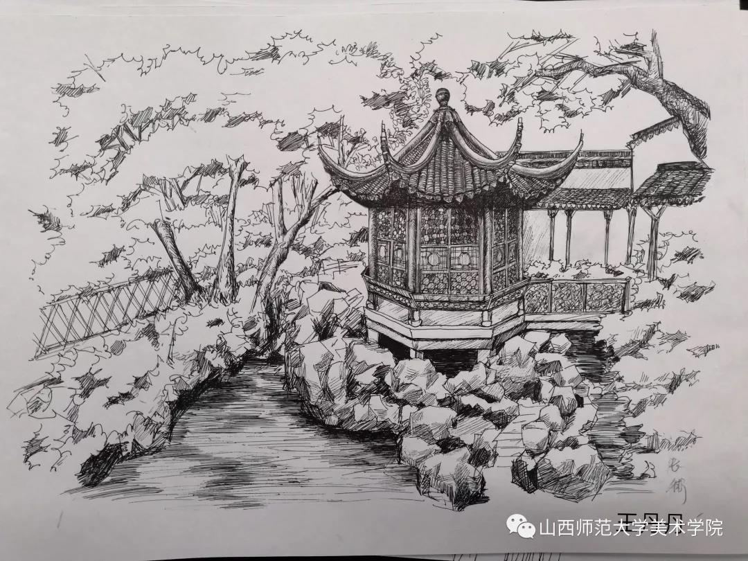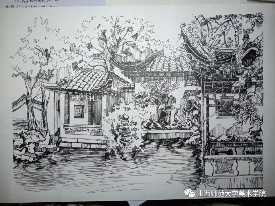 本次考察作业要求通过钢笔速写或者钢笔(水彩)淡彩,以及考察报告总结本次的考察成果。虽然画面中还呈现出或多或少的问题,但是同学们能够积极适应并用画笔描绘出自己眼中的空间艺术,并对考察内容有自己独特的见解,与老师和同学积极进行沟通和交流。希望同学们通过本次外出考出考察亲身体验和观察,开阔眼界、增长见识、提高审美、拓宽知识面。从自然景观中受到启示,学习古人的传统智慧。从都市设计的案例中,实际体会设计人员所应具备的基本素质要求,以培养自己的观察能力、分析能力、表现能力、设计能力,以及和专业相关的综合素养。
