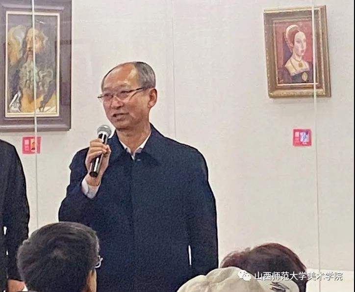 副校长车文明宣布坦培拉古典绘画汇报作品展开幕。