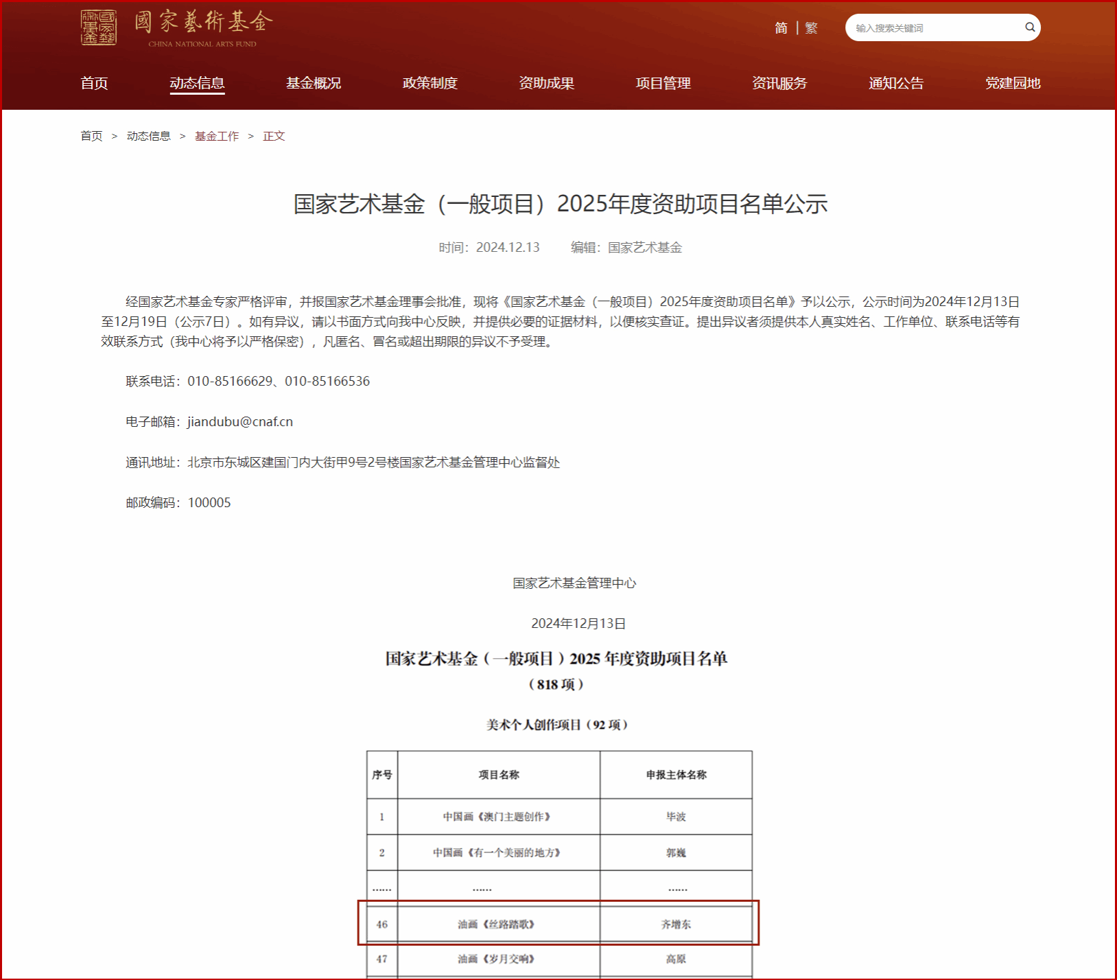 近日,国家艺术基金管理中心公示了2025年度国家艺术基金(一般项目)美术个人创作项目资助名单, 成人论坛 齐增东副教授申报的项目油画创作《丝路踏歌》成功入项,这也是 成人论坛 首次获批国家艺术基金美术个人创作项目。