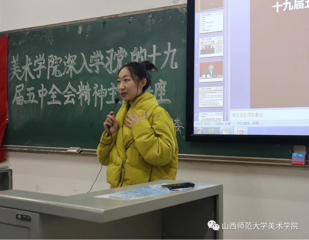 专职辅导员高艺老师在10106教室开展了深入学习党的十九届五中全会精神专题讲座。参与人员有2020届青马班全体成员。